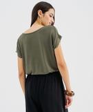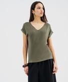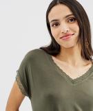 Tee-shirt à manches courtes et col V en dentelle coupe loose femme[MISSING] kaki