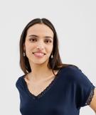 Tee-shirt à manches courtes et col V en dentelle coupe loose femme[MISSING] navy