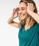 Tee-shirt à manches courtes et col V en dentelle coupe loose femme bleu canard