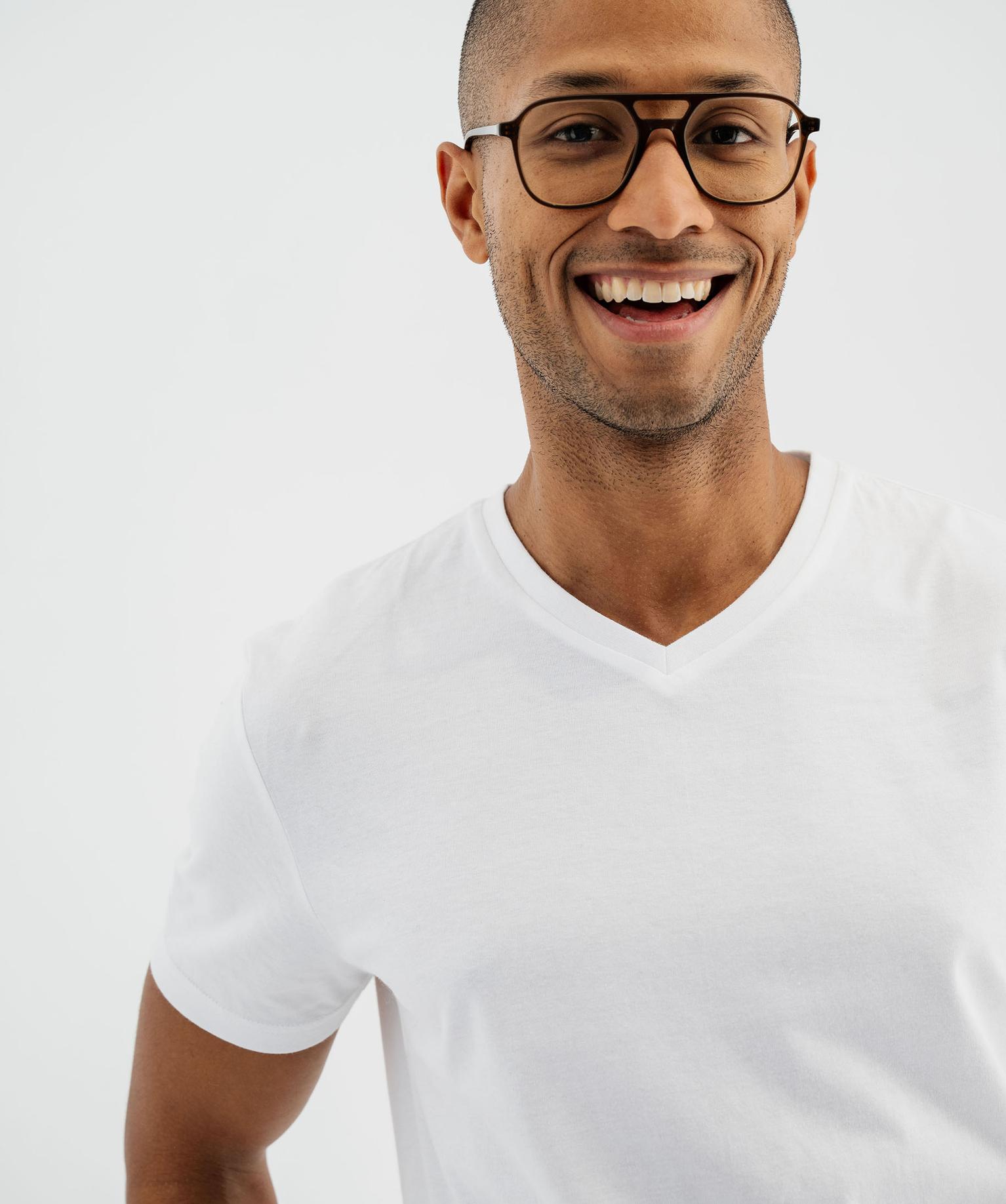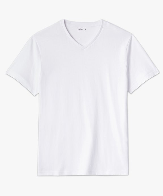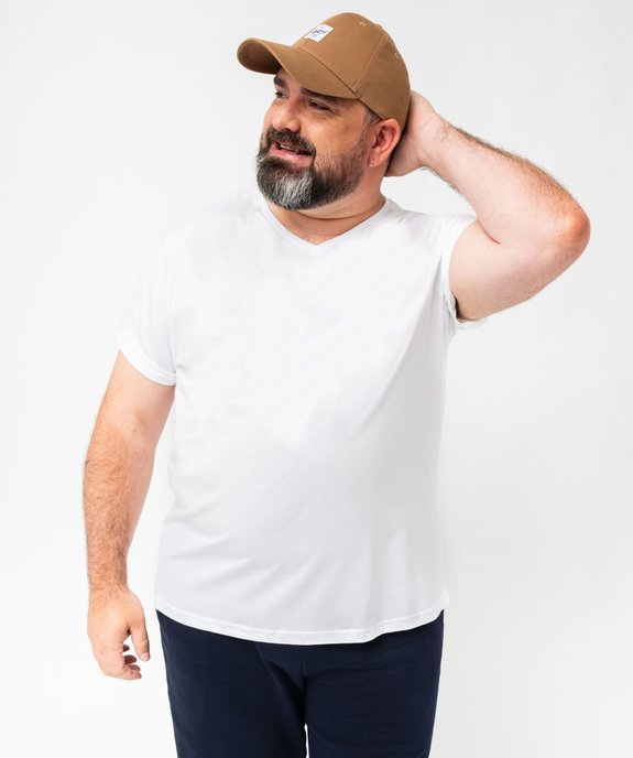 Les essentiels aussi savent être chic, la preuve avec ce tee-shirt homme au col V. Vous le porterez aussi bien seul avec un chino et des baskets que glissé sous un blazer, pour rendre un costume un peu moins strict. Vous aimerez sa coupe confortable et facile à vivre. Un tee-shirt à manches courtes à ajouter impérativement au vestiaire. Col V en fin bord-côte. Ourlet surpiqué aux manches et dans le bas. Base droite.