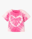 Tee-shirt à manches courtes motif coeur effet tie and dye fille rose