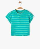 Tee-shirt à manches courtes rayé col tunisien bébé garçon vert
