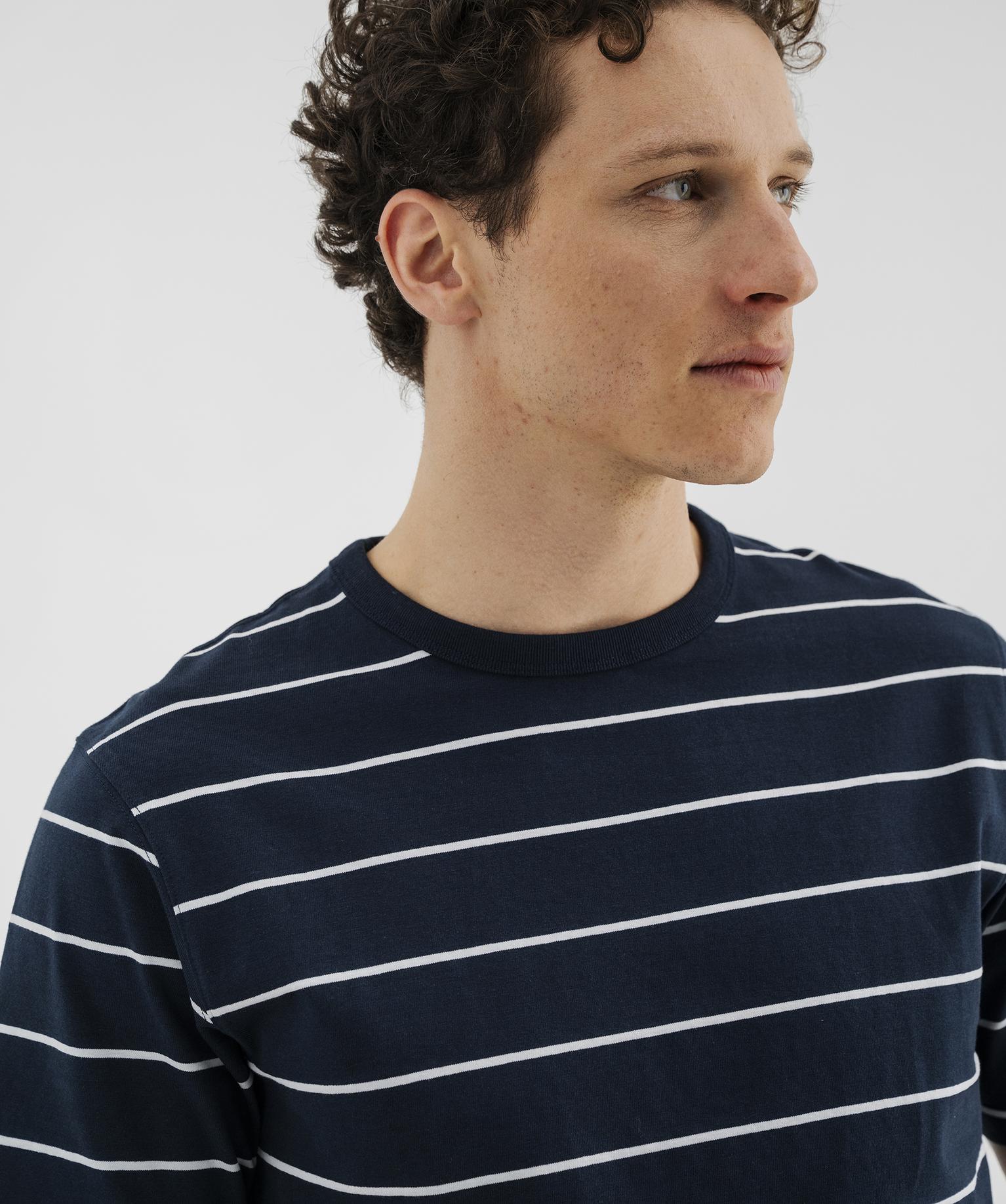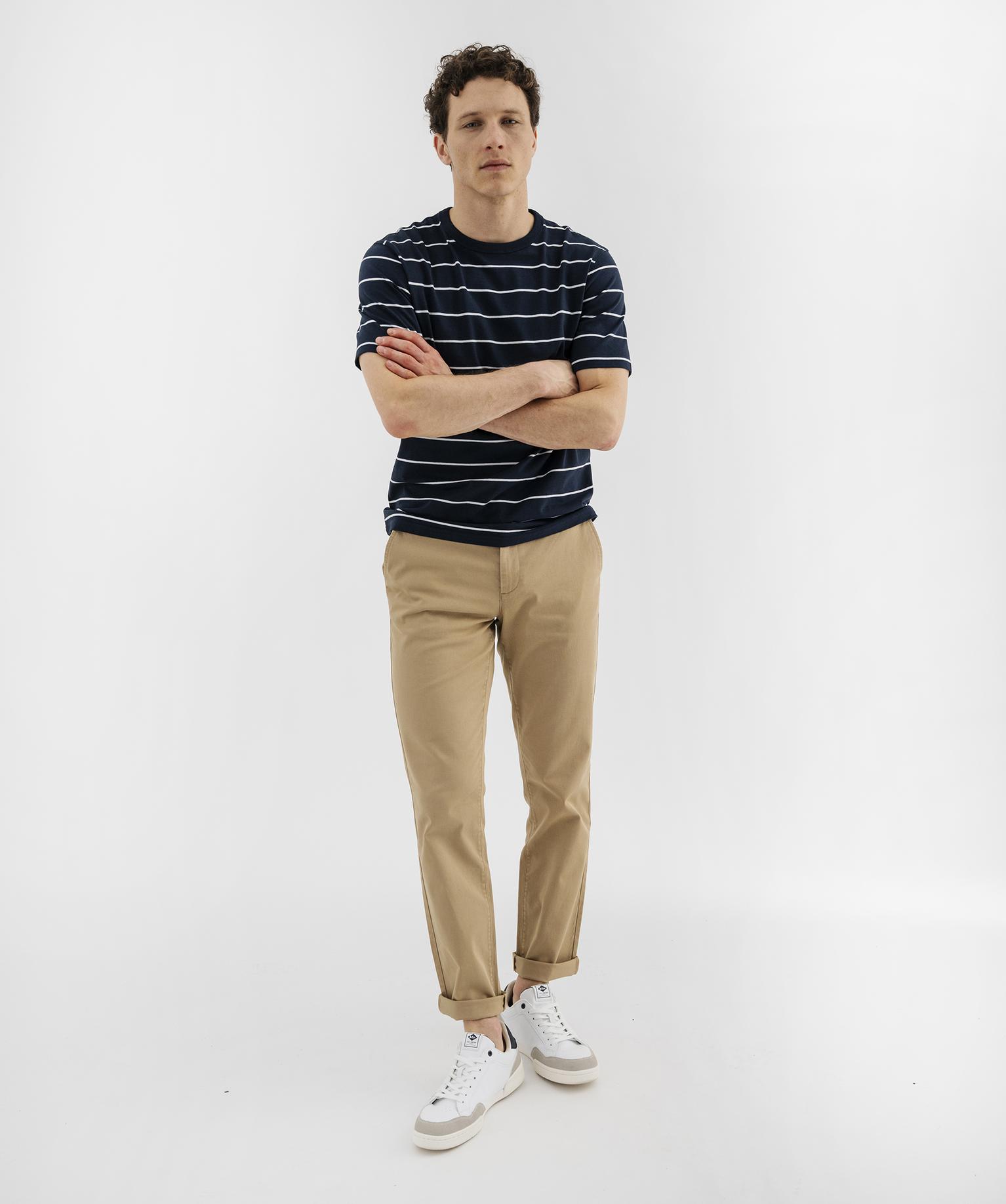 Gémo revisite le classique tee-shirt marin dans une version plus épaisse et plus résistante. Parfait pour la saison estivale, ce tee-shirt pour homme séduit par ses rayures classiques, son col rond en bord-côte uni et sa coupe droite confortable. Confectionné dans un jersey 100% coton épais et robuste, il est conçu pour vous accompagner plus longtemps. Ce tee-shirt rayé s’associe facilement à un bermuda chino et des chaussures bateau pour un look décontracté et chic.