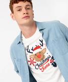 Craquez pour le design unique de ce tee-shirt à manches courtes. Un tee-shirt homme spécial Noël décoré d’un adorable renne et illuminé par des touches pailletées. Ce tee-shirt scintillant constituera une tenue de réveillon décontractée rehaussée d'une touche d’humour. Il se porte aussi bien avec un jean qu’avec un pantalon en toile et une veste de costume. Col rond en bord-côte.