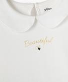 Tee-shirt à manches longues avec col Claudine fille blanc chine