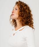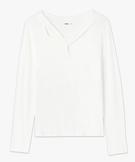 Tee-shirt à manches longues avec col fantaisie femme blanc chine