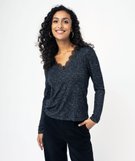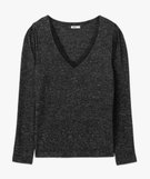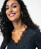 Tee-shirt à manches longues avec col V en dentelle femme noir