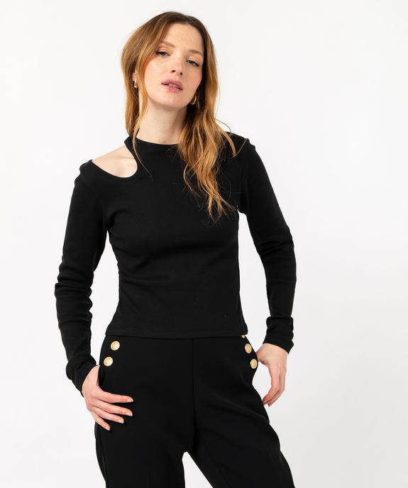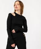 Tee-shirt à manches longues avec découpe sur l’épaule femme noir
