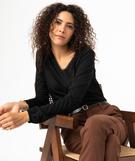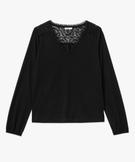 Tee-shirt à manches longues avec détails dentelle femme noir