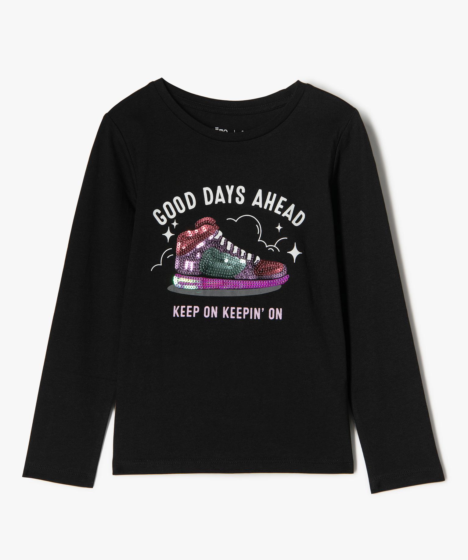 Tee-shirt à manches longues avec motif en sequins fille noir