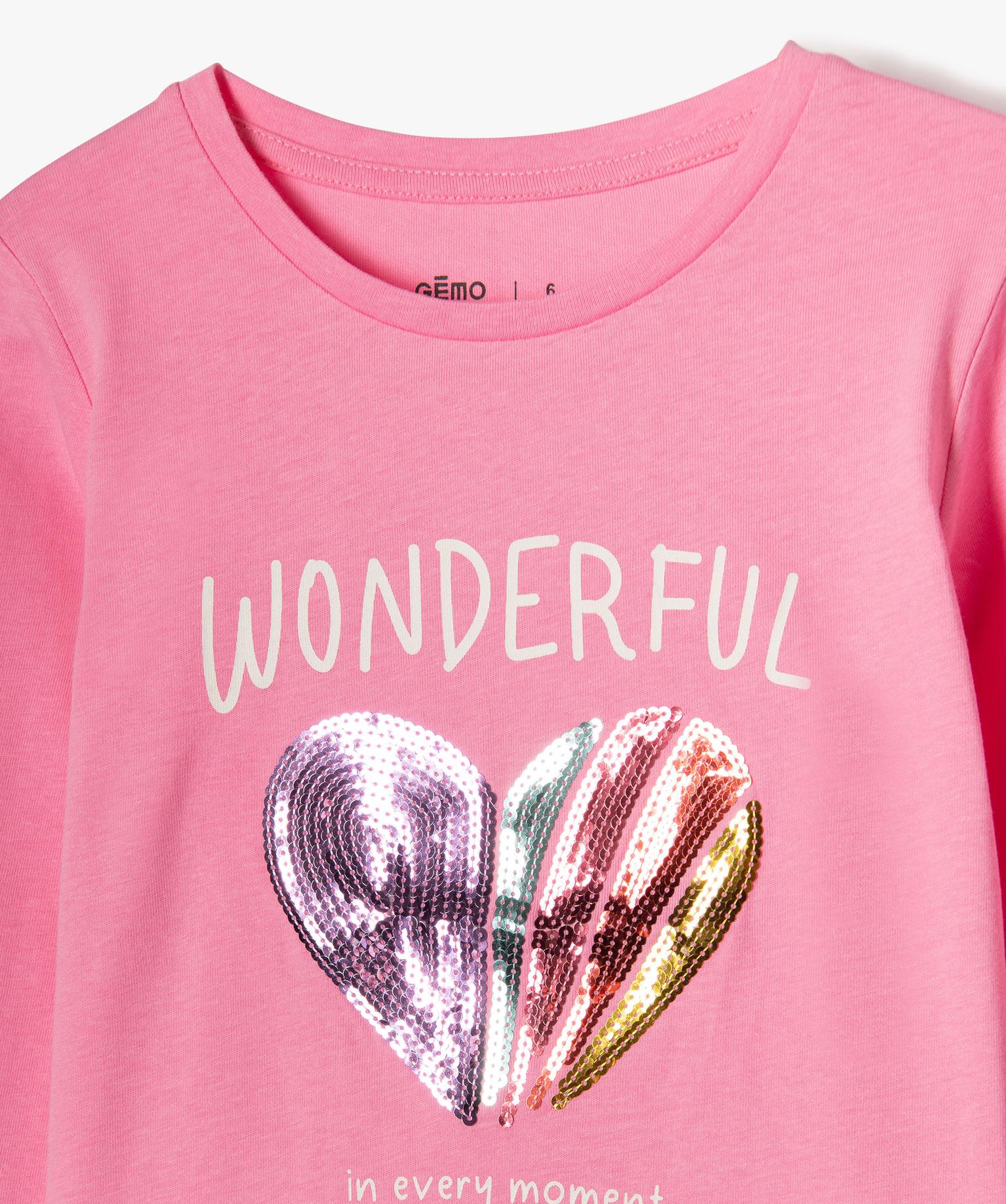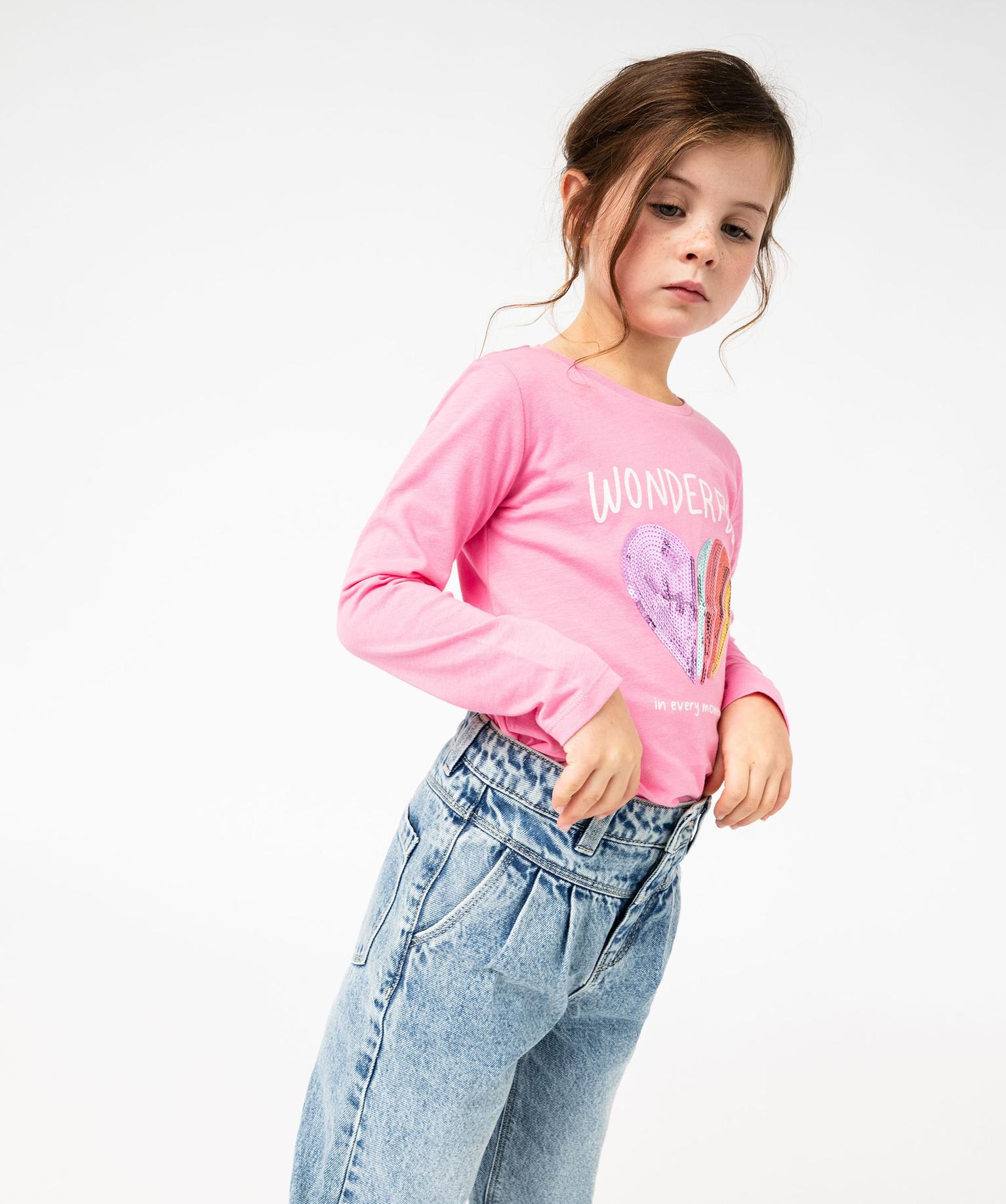 Tee-shirt à manches longues avec motif en sequins fille rose