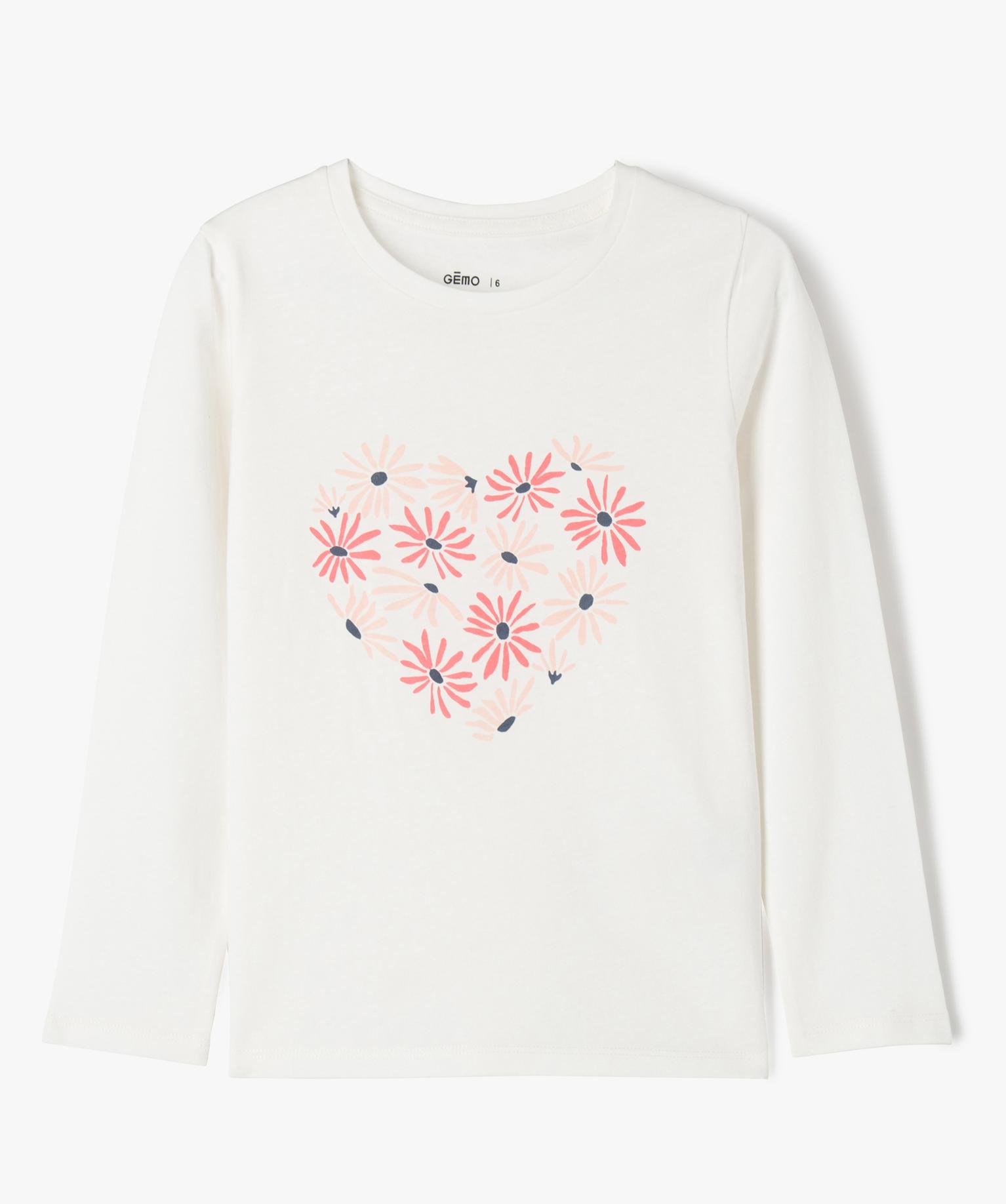 Tee-shirt à manches longues avec motif fleuri fille blanc chine