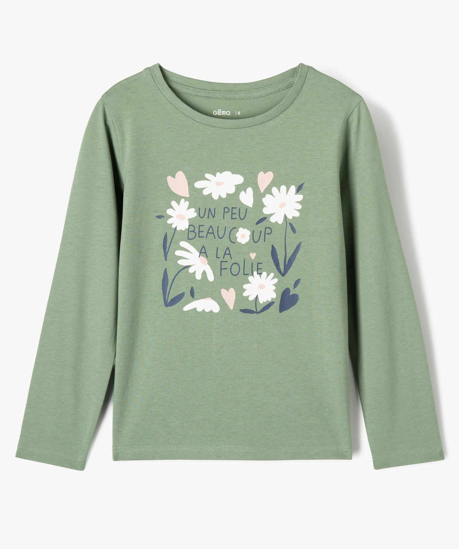 Tee-shirt à manches longues avec motif fleuri fille vert