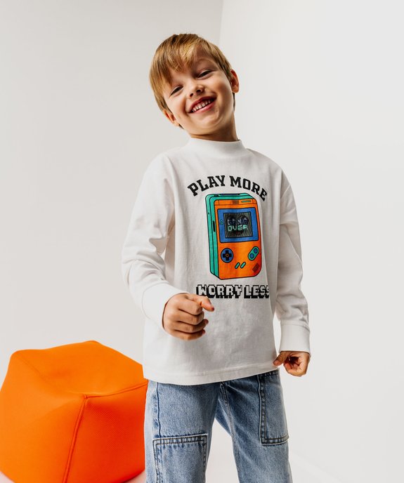 Tee-shirt manches longues imprimé jeu vidéo garçon blanc chine
