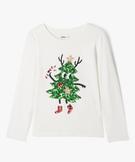 Tee-shirt à manches longues avec motif Noël en sequins fille blanc chine