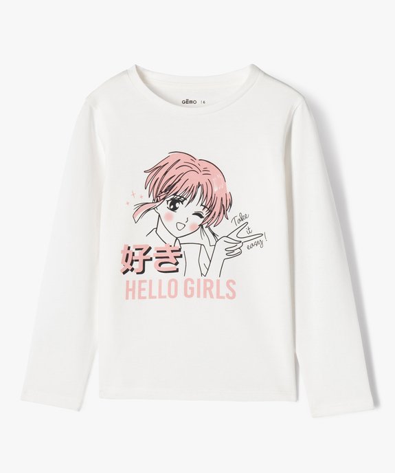 Tee-shirt à manches longues avec motifs girly fille blanc