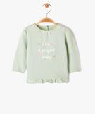 Tee-shirt à manches longues avec volant dans le bas bébé fille vert clair