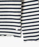LuluCastagnette revisite le tee-shirt marin à manches longues avec un maximum de style et de détails girly. Ce tee-shirt fille, confectionné en maille gaufrée affiche de jolies finitions froncées aux poignets et dans le bas, ainsi que des volants sur les épaules. Il affiche la signature de la marque à travers un logo métallique brodé dans le bas. Une marinière originale qui ajoute une belle touche de féminité à tous les looks du quotidien. Col rond finition biais.