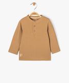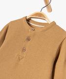 Tee-shirt à manches longues col tunisien en maille nid d'abeille bébé garçon marron vif