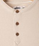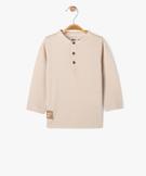 Tee-shirt à manches longues col tunisien en maille nid d'abeille bébé garçon beige