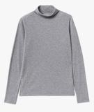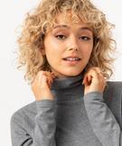 Tee-shirt à manches longues et col roulé en maille côtelée femme gris chine