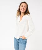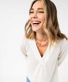 Tee-shirt à manches longues et col V en maille ajourée femme[MISSING] blanc chine