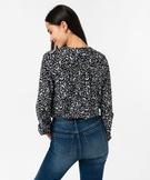 Élégant comme une blouse, ce tee-shirt à manches longues légèrement bouffantes vous surprendra par son confort. Il est fabriqué dans une matière texturée fluide et extensible, vous offrant liberté de mouvements et confort. Ce tee-shirt femme arbore un large col en V travaillé par des surpiqûres, des manches longues avec poignets resserrés par élastique et des fronces dans le haut du dos. Un haut imprimé facile à assortir à un jean comme à une jupe unie.
