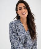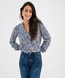 Élégant comme une blouse, ce tee-shirt à manches longues légèrement bouffantes vous surprendra par son confort. Il est fabriqué dans une matière texturée fluide et extensible, vous offrant liberté de mouvements et confort. Ce tee-shirt femme arbore un large col en V travaillé par des surpiqûres, des manches longues avec poignets resserrés par élastique et des fronces dans le haut du dos. Un haut imprimé facile à assortir à un jean comme à une jupe unie.
