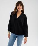 Tee-shirt à manches longues et col V en maille texturée femme noir