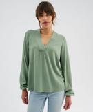 Élégant comme une blouse, ce tee-shirt à manches longues légèrement bouffantes vous surprendra par son confort. Il est fabriqué dans une matière texturée fluide et extensible, vous offrant liberté de mouvements et confort. Ce tee-shirt femme arbore un large col en V travaillé par des surpiqûres, des manches longues avec poignets resserrés par élastique et des fronces dans le haut du dos. Un haut imprimé facile à assortir à un jean comme à une jupe unie.