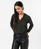 Tee-shirt à manches longues et col V en maille texturée femme kaki