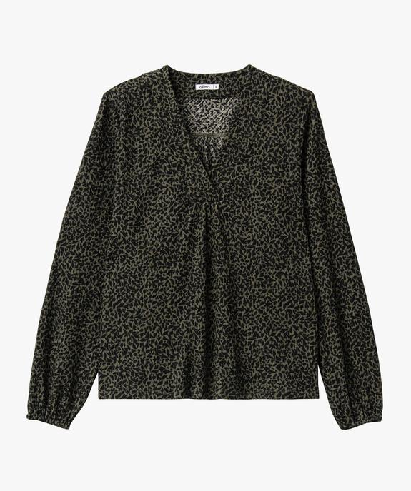 Élégant comme une blouse, ce tee-shirt à manches longues légèrement bouffantes vous surprendra par son confort. Il est fabriqué dans une matière texturée fluide et extensible, vous offrant liberté de mouvements et confort. Ce tee-shirt femme arbore un large col en V travaillé par des surpiqûres, des manches longues avec poignets resserrés par élastique et des fronces dans le haut du dos. Un haut imprimé facile à assortir à un jean comme à une jupe unie.