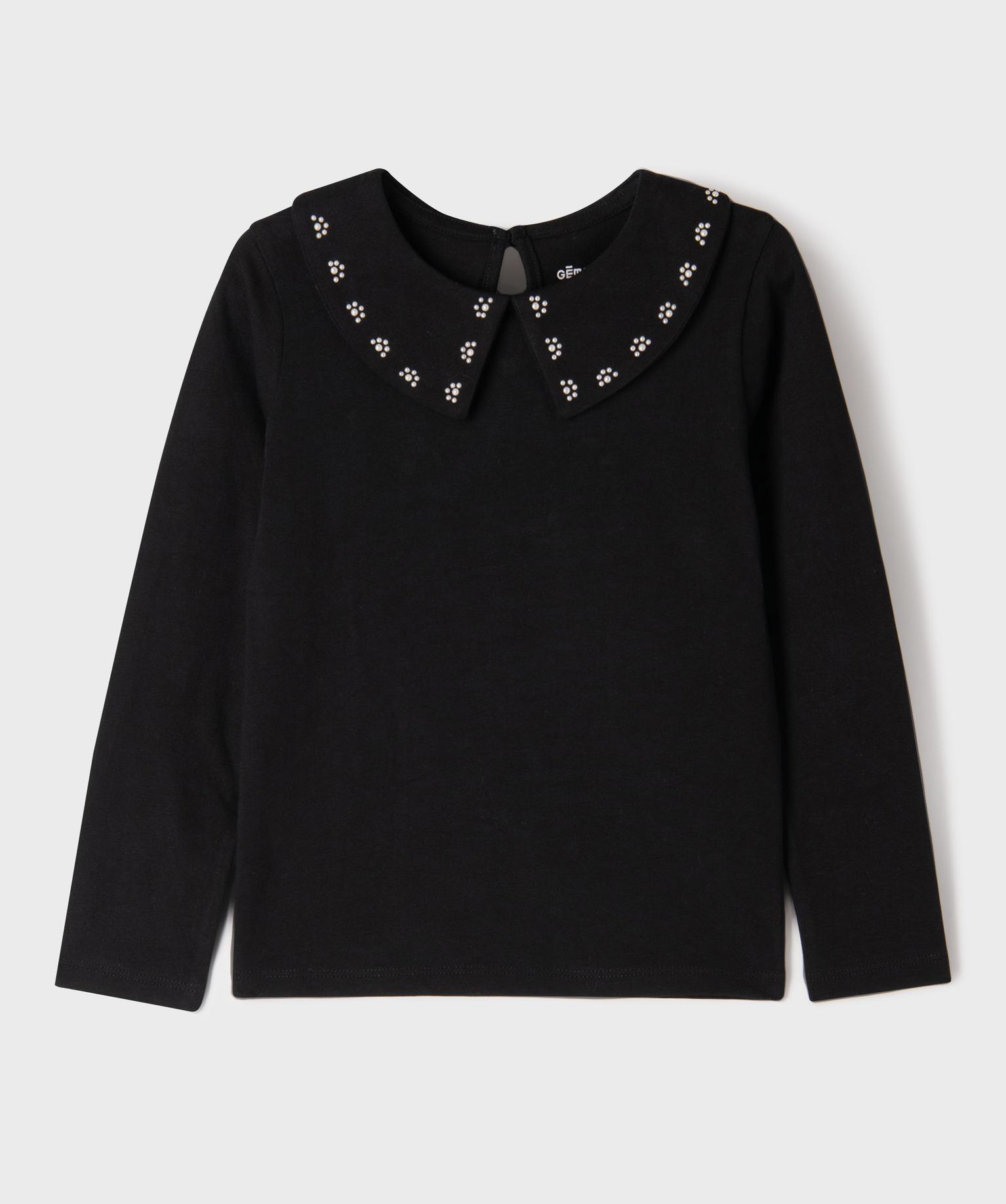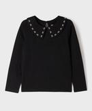 Tee-shirt à manches longues et grand col fantaisie fille noir