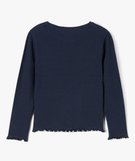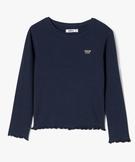 Un grand classique toujours aussi efficace : le tee-shirt à manches longues et col rond. Ce tee-shirt fille, confectionné dans une maille côtelée est 100% coton. Sa finition froncée au bas des manches et à la base lui confère une touche romantique et girly. Le message « Enjoy Life » brodé en fil doré décore la poitrine. Basique essentiel, ce tee-shirt se porte près du corps en association avec une jupe patineuse, un pantalon flare ou sous une robe chasuble. Col rond en bord-côte.