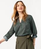 Tee-shirt à manches longues imprimé avec col boutonné femme[MISSING] vert