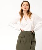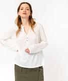 Tee-shirt à manches longues imprimé avec col boutonné femme[MISSING] blanc