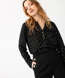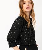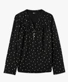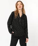 Tee-shirt à manches longues imprimé avec col boutonné femme[MISSING] noir
