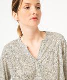 Aussi confortable qu’un tee-shirt, aussi élégant qu’une blouse, ce top imprimé remportera tous les suffrages ! Ce tee-shirt femme se distingue par son joli col en V prolongé par une rangée de 3 petits boutons métalliques. Doté de petites fronces sur le buste et dans le dos, il offre un maximum d’aisance. Les manches peuvent se porter retroussées grâce à une patte qui se fixe à un bouton sur le dessus du bras. Un tee-shirt à manches longues à porter avec avec un pantalon en toile et une paire d’escarpins pour un look chic et féminin.