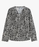 Aussi confortable qu’un tee-shirt, aussi élégant qu’une blouse, ce top imprimé remportera tous les suffrages ! Ce tee-shirt femme se distingue par son joli col en V prolongé par une rangée de 3 petits boutons métalliques. Doté de petites fronces sur le buste et dans le dos, il offre un maximum d’aisance. Les manches peuvent se porter retroussées grâce à une patte qui se fixe à un bouton sur le dessus du bras. Un tee-shirt à manches longues à porter avec avec un pantalon en toile et une paire d’escarpins pour un look chic et féminin.