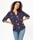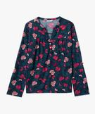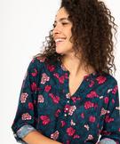 Vous allez tomber sous le charme de ce tee-shirt à manches longues aux allures de blouse. Ce tee-shirt femme se distingue par son col en V prolongé par 3 petits boutons métalliques et ses fronces sur le buste qui donnent de l’aisance. Ses manches peuvent se porter retroussées grâce à une patte qui se fixe à un bouton sur le dessus du bras. Ce tee-shirt à motifs fleuris s’accorde aussi bien avec un pantalon qu’avec une jupe pour composer des looks très féminins. Bas plus long au dos.