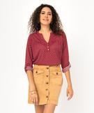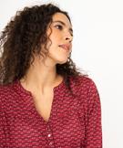 Vous allez tomber sous le charme de ce tee-shirt à manches longues aux allures de blouse. Ce tee-shirt femme se distingue par son col en V prolongé par 3 petits boutons métalliques et ses fronces sur le buste qui donnent de l’aisance. Ses manches peuvent se porter retroussées grâce à une patte qui se fixe à un bouton sur le dessus du bras. Ce tee-shirt à motifs fleuris s’accorde aussi bien avec un pantalon qu’avec une jupe pour composer des looks très féminins. Bas plus long au dos.
