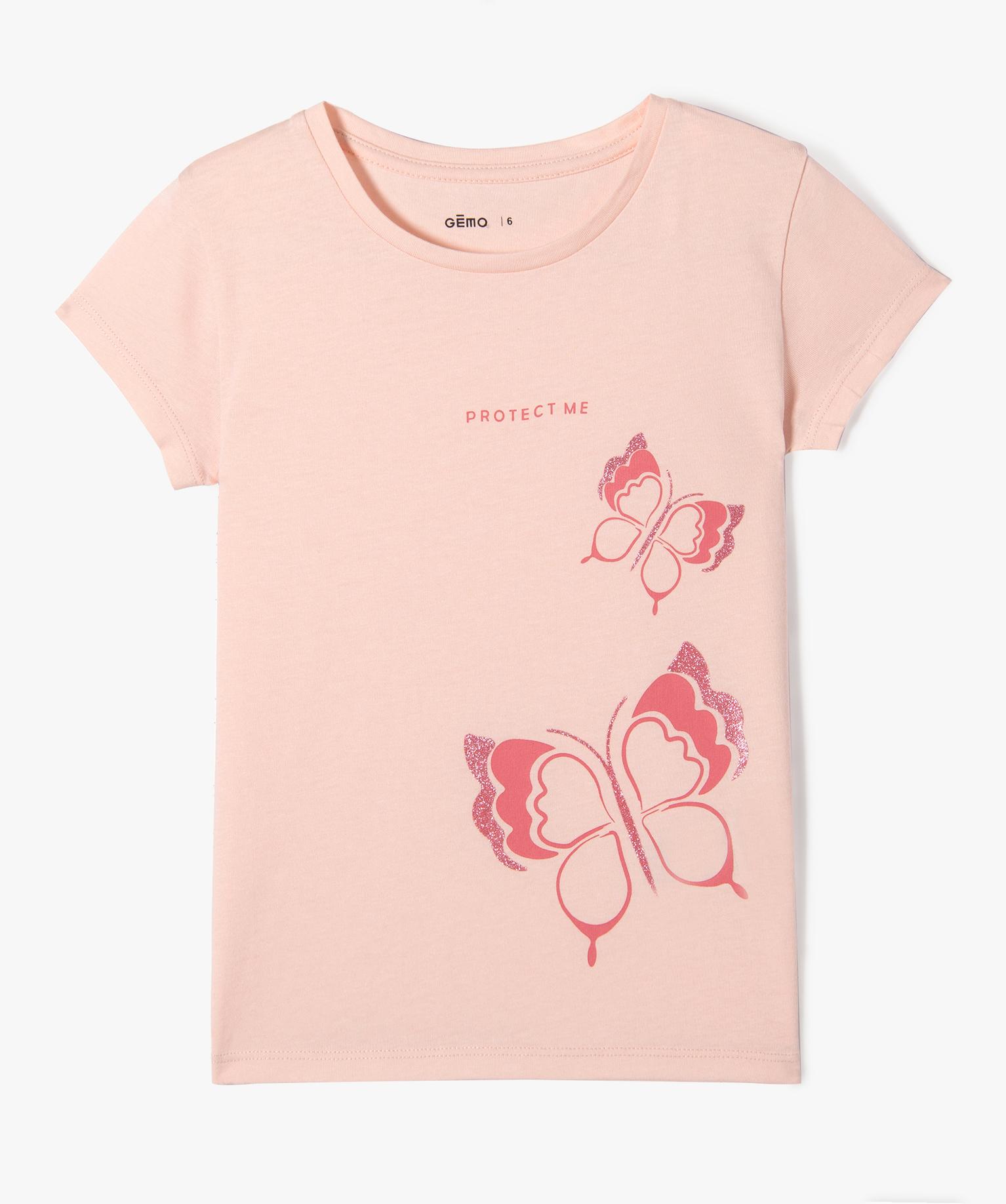 Tee-shirt à manches ultra courtes avec motif girly fille rose
