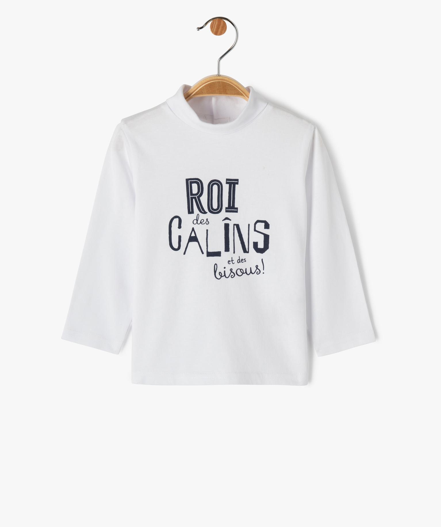 Tee-shirt à message manches longues et col roulé bébé garçon blanc