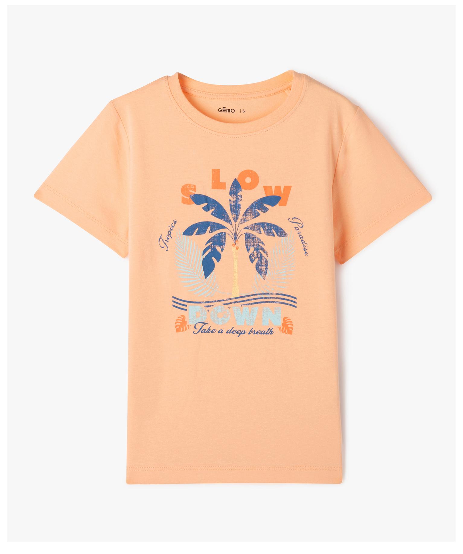 Un vent de vacances souffle sur le dressing des garçons ! Ce t-shirt à manches courtes est un indispensable pour toute l'année. Confectionné dans une matière 100% coton, il est agréable à porter. Il possède un col rond classique et une coupe droite qui assure une bonne aisance. Facile à enfiler, il est parfait pour les matins où l'on est un peu pressé. Sa longueur standard est idéale et il ne possède pas de poche sur le devant pour un style épuré. On aime son inspiration pleine de bonne humeur qui invite au jeu et à la détente.