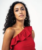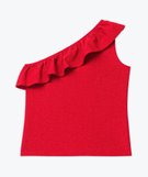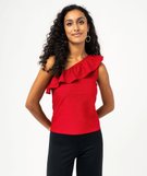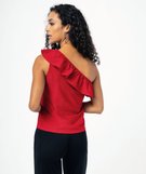 Tee-shirt asymétrique à volant et paillettes femme rouge
