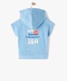 Tee-shirt ample, à capuche, en éponge, idéal pour la plage. Il s'adaptera aussi à des looks estivaux décontractés, avec un short en éponge ou un bermuda en toile. Le tee-shirt bébé possède des manches courtes tombantes (pas de coutures aux emmanchures, un motif marin sur la poitrine et un grand motif assorti au dos. Un vêtement de plage à oser au quotidien.