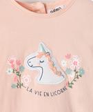 Tee-shirt bébé fille à manches courtes avec motif licorne rose