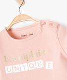 Avec sa coupe droite et ses manches courtes classiques, le tee-shirt bébé fille est un basique de premier choix ! Paré d'une inscription fantaisie pailletée, il est parfait avec un jean, un legging ou avec une jupe. 100% coton biologique, ce tee-shirt équipe votre enfant avec douceur et confort. Astucieux, le top possède deux boutons sur l'épaule gauche pour élargir l'encolure et faciliter le passage de la tête au moment de l'habillage. Finition biais au col.