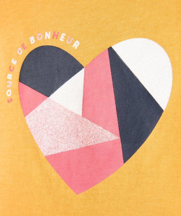 Tee-shirt bébé fille en coton à manches courtes et motif pailleté jaune