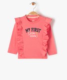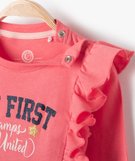 Tee-shirt bébé fille manches longues, volants et paillettes - Camps United rose